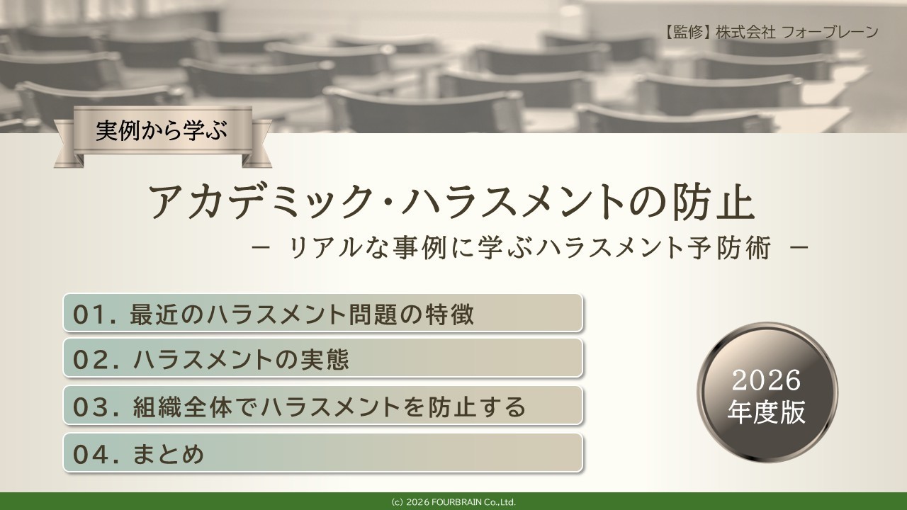 大学特有の7つのリアルな事例から、今の時代における指導とハラスメントの境界線を学ぶ実践的研修です。