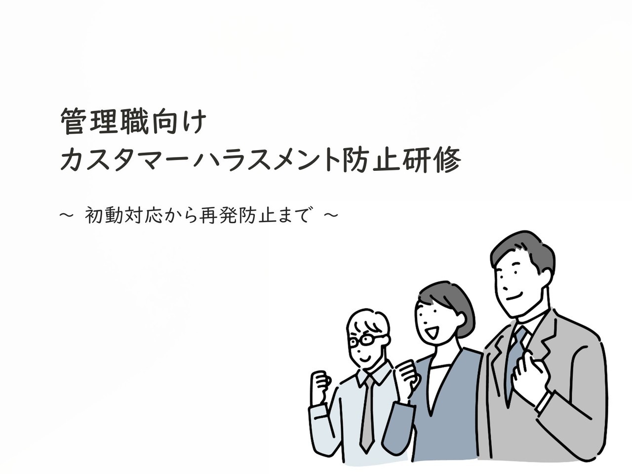 本教材は、管理職向けカスタマーハラスメント防止研修動画です。顧客等の要求内容・手段態様が社会通念上の許容範囲を超え就業環境を害するカスハラの定義と、正当なクレームとの違いを理解し、長時間拘束・人格否定・深夜連絡などの具体事例での対応方法を学びます。「部下を一人で対応させない」基本姿勢のもと、状況把握・対応引き継ぎ・方針明確化の初動3ステップと、事案共有・改善による再発防止体制を構築し、職員を守り組織の信頼を高める実践的マネジメント力の向上を目指します。