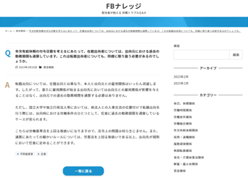 FBナレッジは、大学や病院、研究機関等において日常的に発生する人事労務をめぐるさまざまな問題解決のためのアドバイスをQ&A形式でご紹介する会員専用のナレッジデータベースです。
